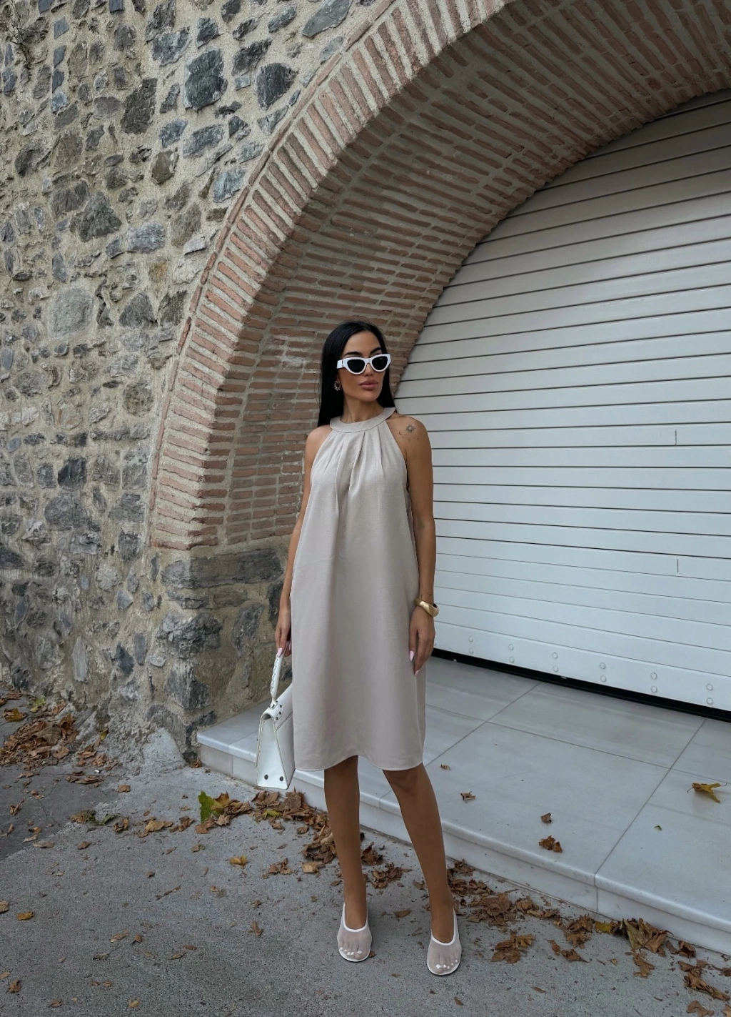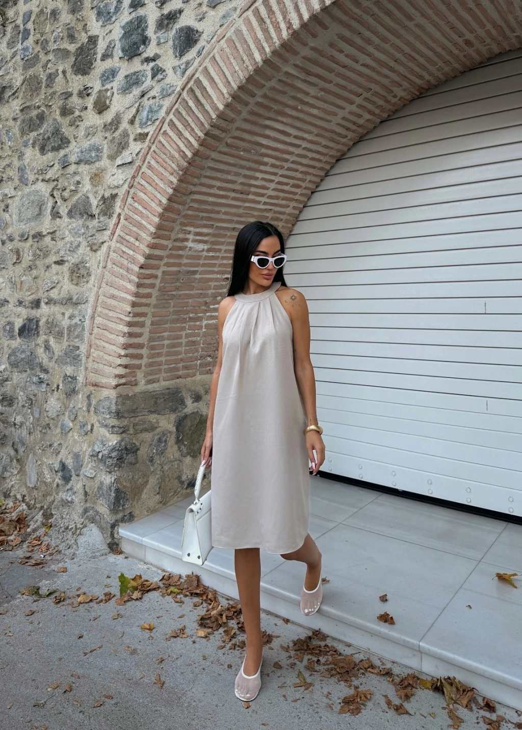 Halter Yaka Dokuma Midi Elbise